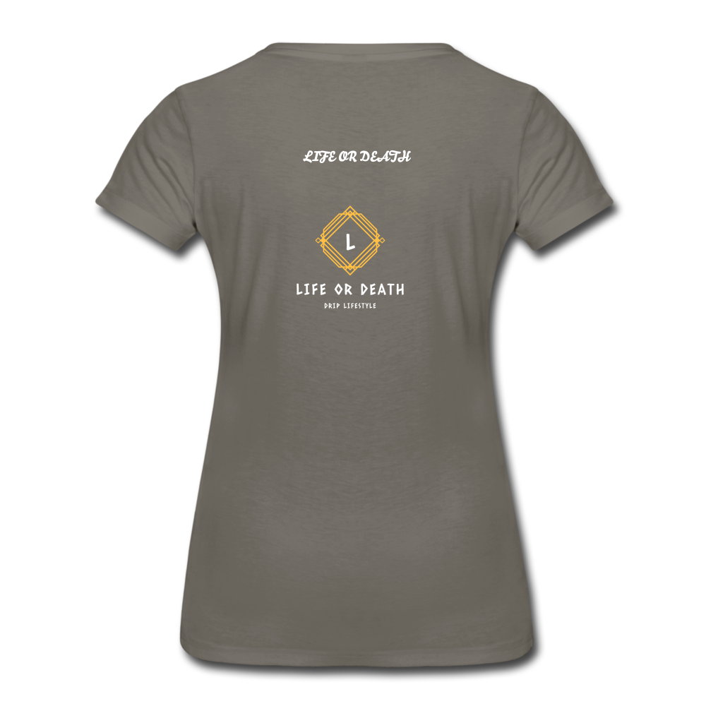 The headliner of our Collection is the premium T-shirt. This is as perfect as perfect gets: it's soft yet stretchy, a little longer than a standard tee and figure-flattering. ITEM RUNS SMALL.- 100% cotton (heather gray is 95% cotton/5% viscose. Heather Blue & Charcoal Gray are 80% cotton/20% polyester. Heather Burgundy is 60% cotton/40% polyester, Heather Oatmeal is 99% Cotton/1% Viscose, Heather Ice Blue is 95% Cotton/5% Viscose) | Fabric weight: 4.42 oz (lightweight)